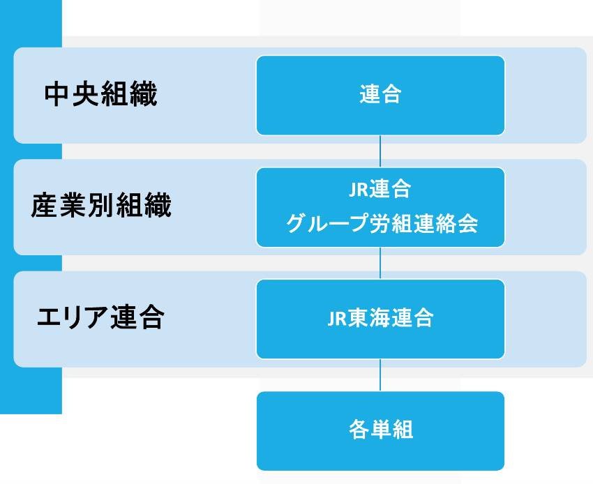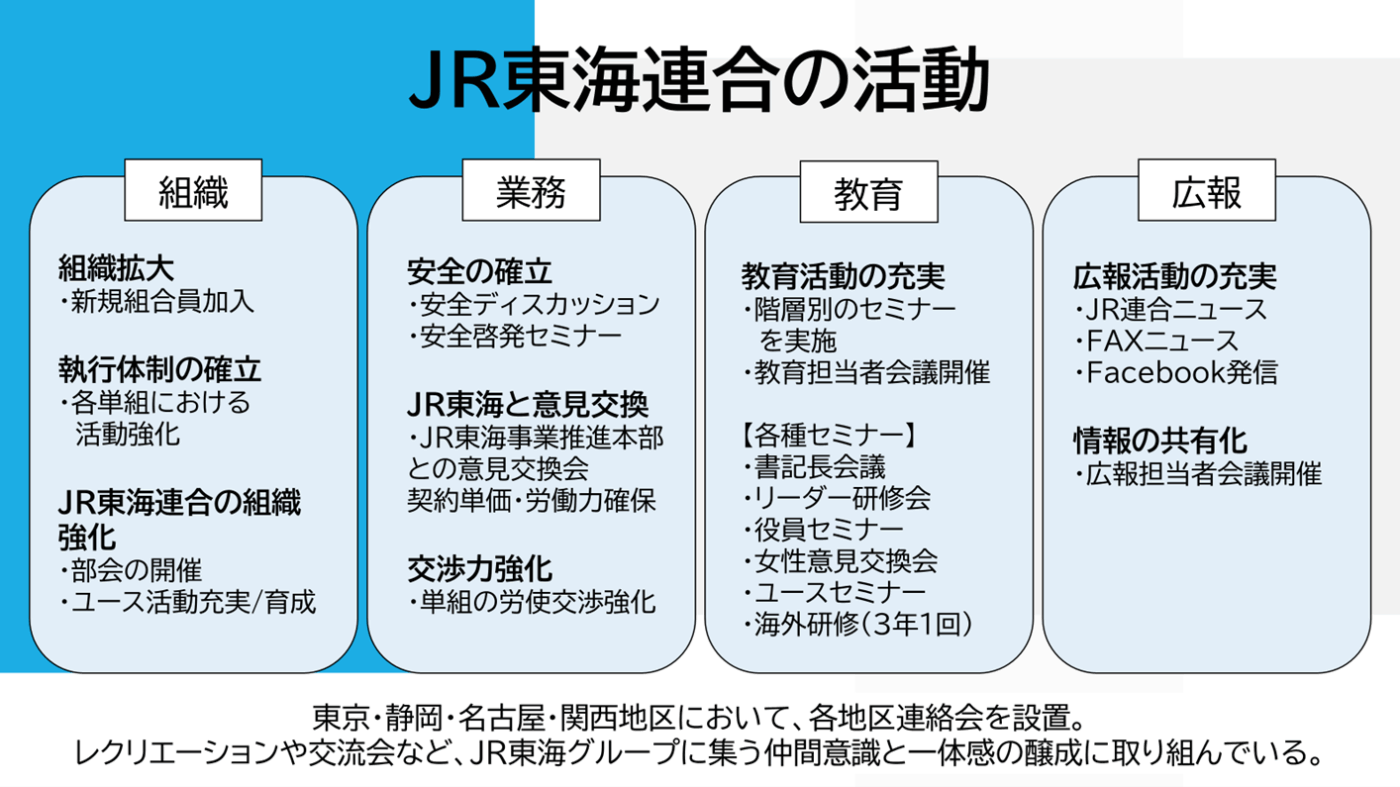 JR東海グループ労働組合連合会は、JRを代表する産業別労働組合である「JR連合」に加盟しています。