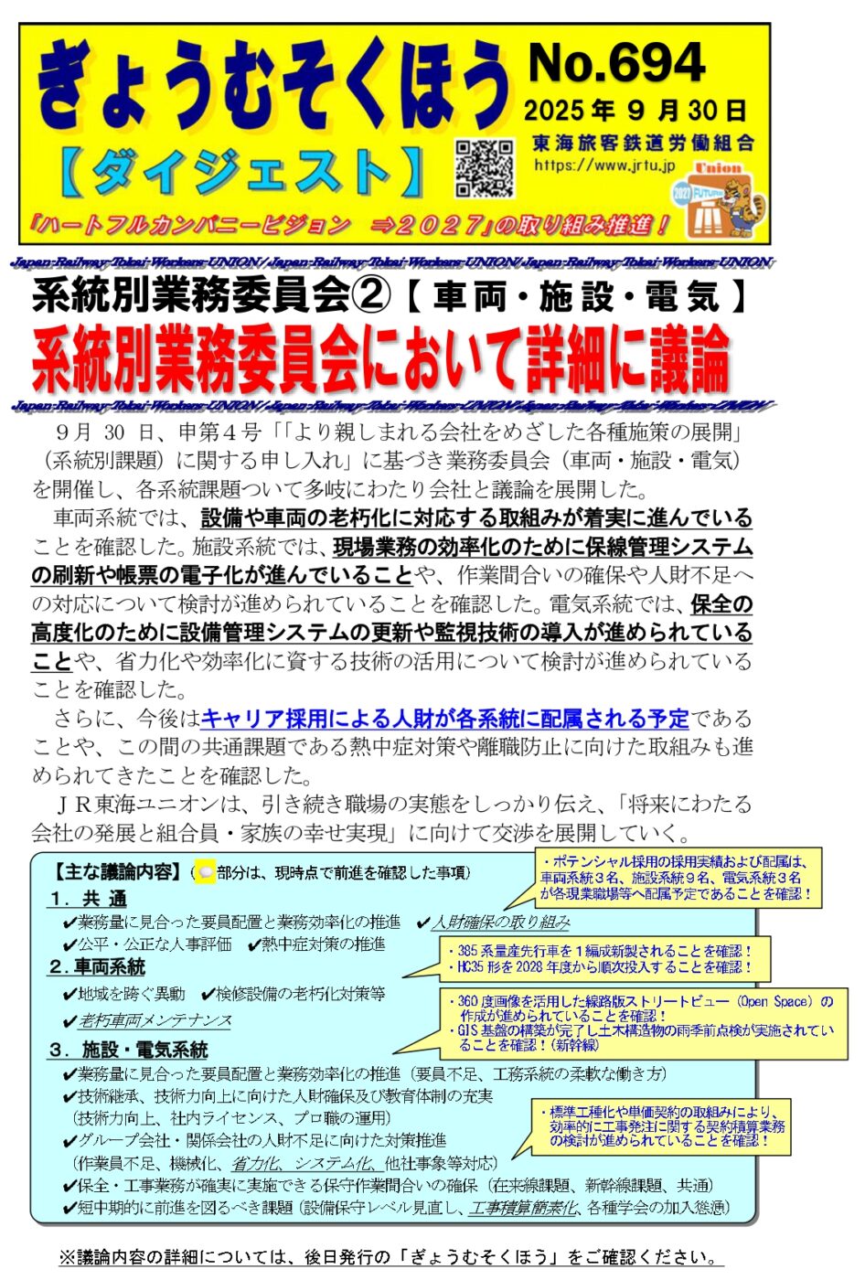▶️ダイジェスト694 【系統別業務委員会②(車両・施設・電気)】250930