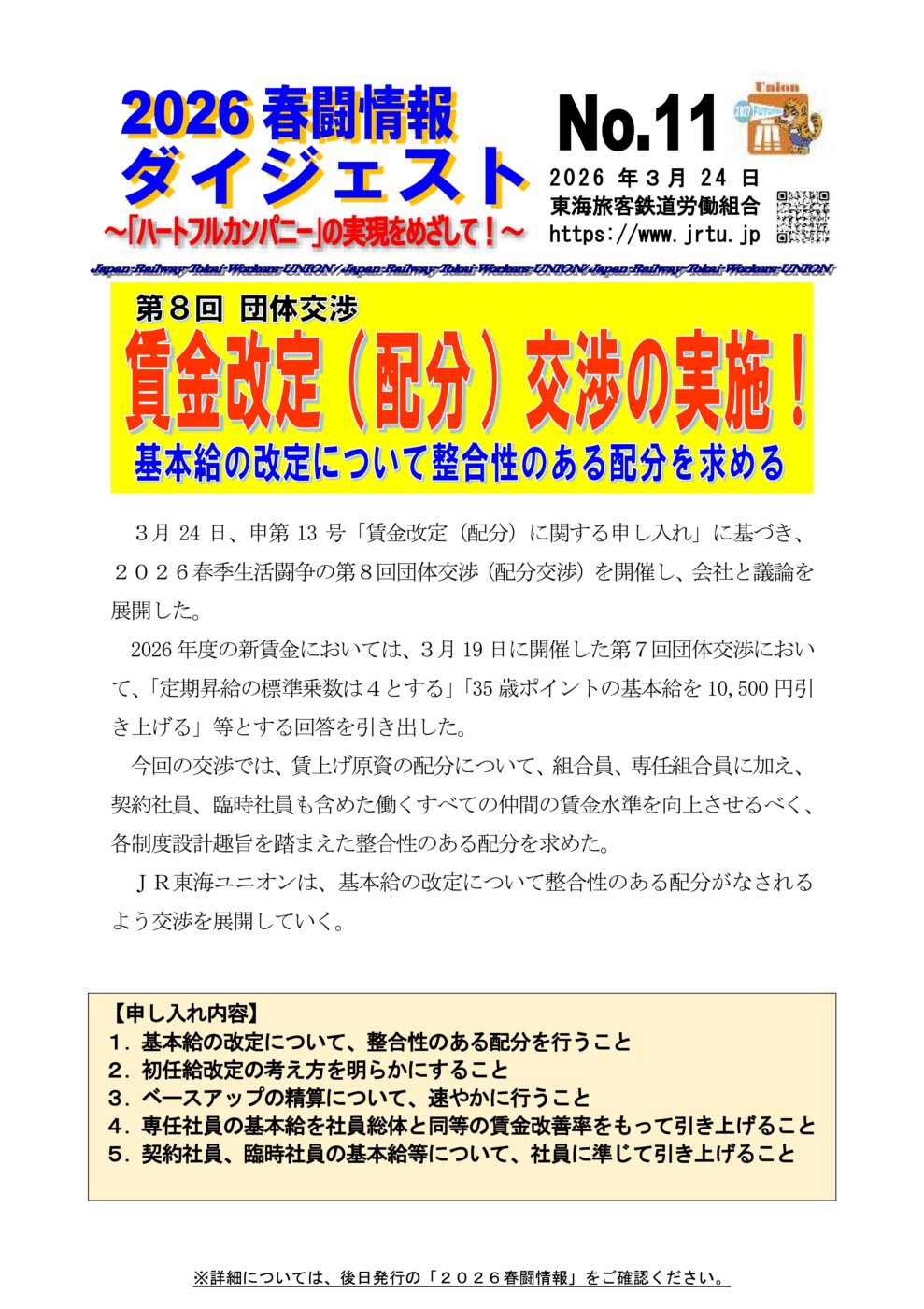 2026春闘情報No.11ダイジェスト【第8回交渉(配分)】260324